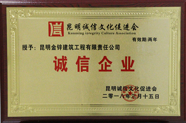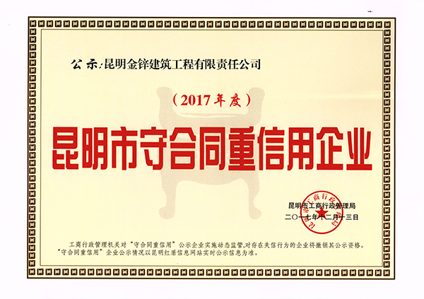 【金鋅市政】2017年誠(chéng)信企業(yè)